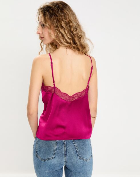 Encolure en V bordée de dentelle devant et derrière