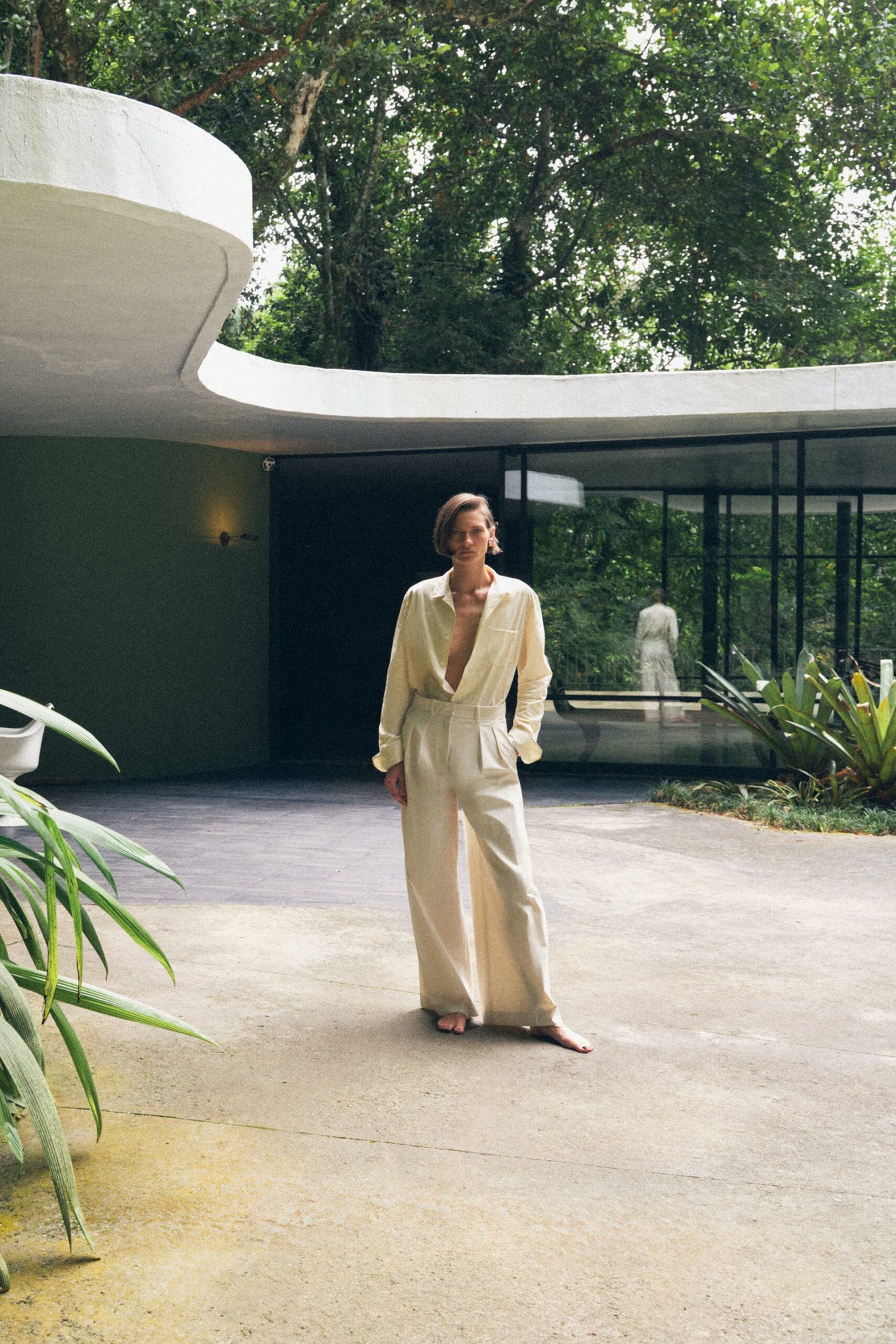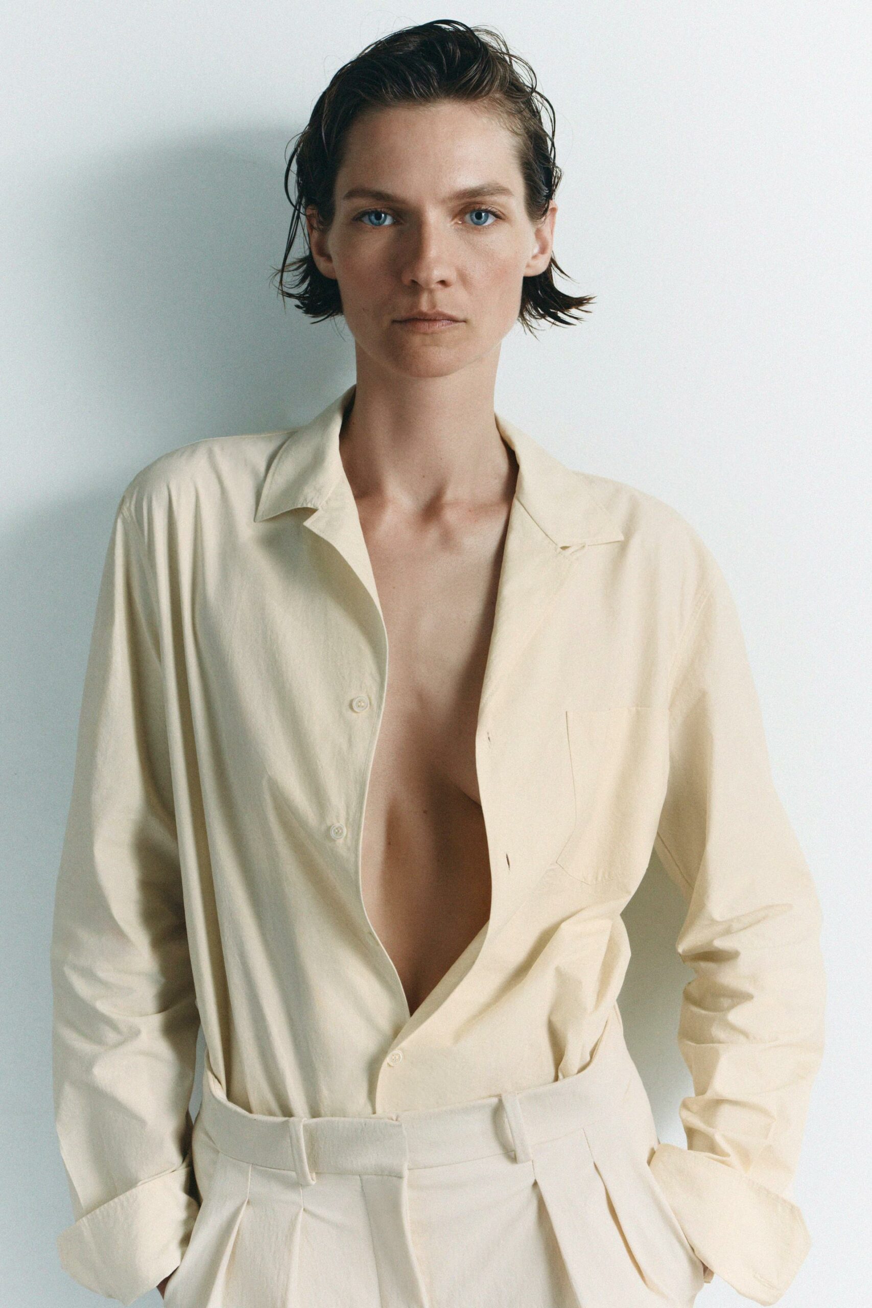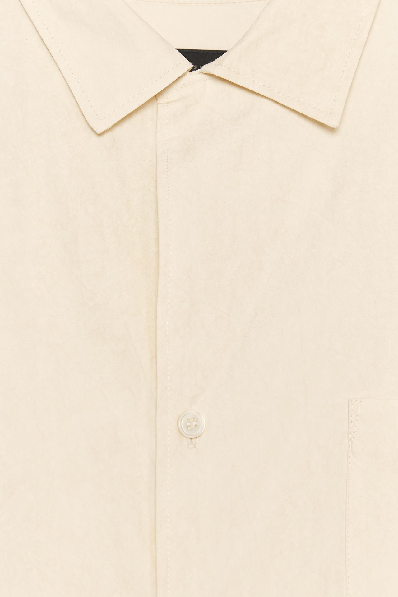 Chemise confectionnée en filature de coton. Col à rabat et manches longues terminées par des poignets. Poche plaquée sur le devant. Ourlet arrondi. Fermeture par boutons sur le devant