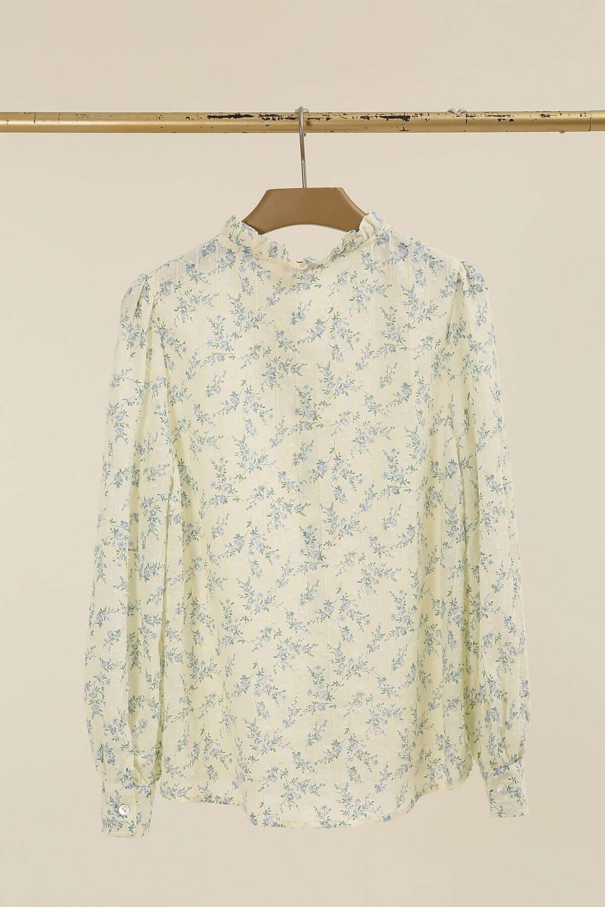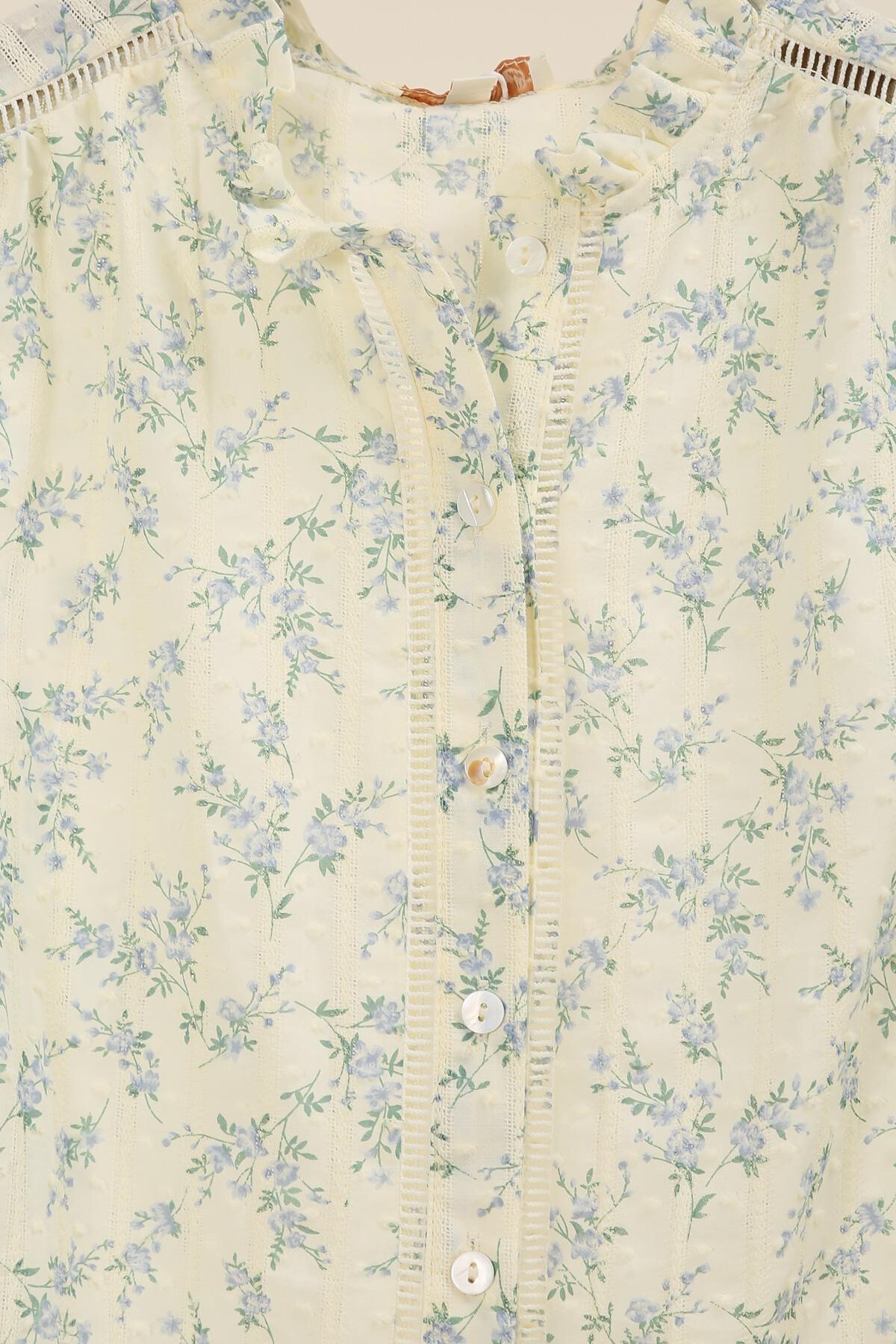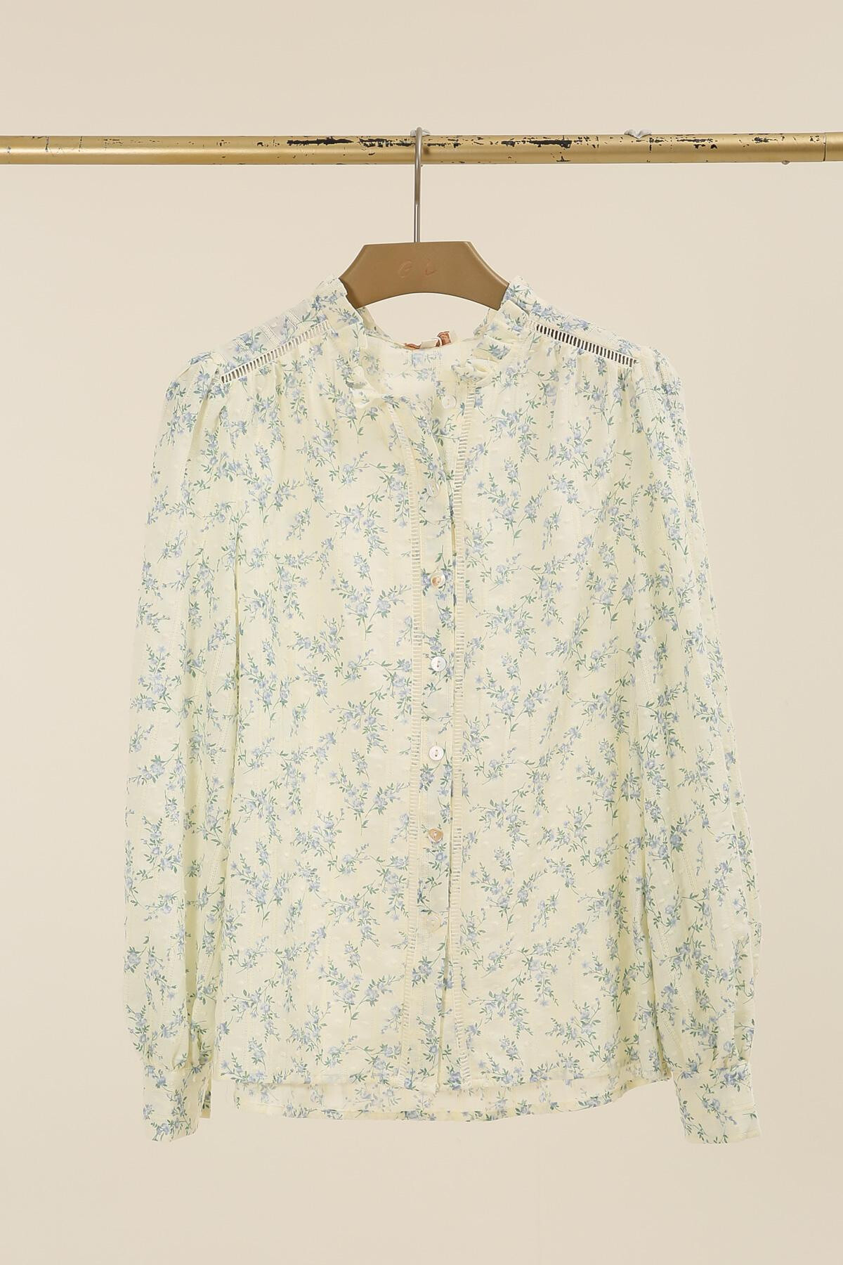 Chemise en melange de coton, imprimé floral, texturée avec broderie