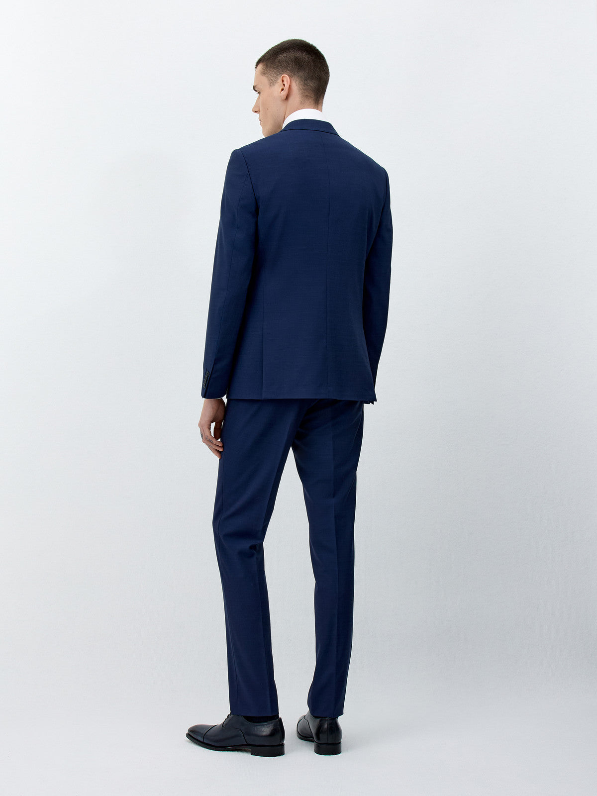 Ce costume slim en laine bleu marine incarne une élégance intemporelle. Sa coupe ajustée affine la silhouette, tandis que le tissu haut de gamme assure confort et durabilité. Un incontournable pour le bureau comme pour les grandes occasions.