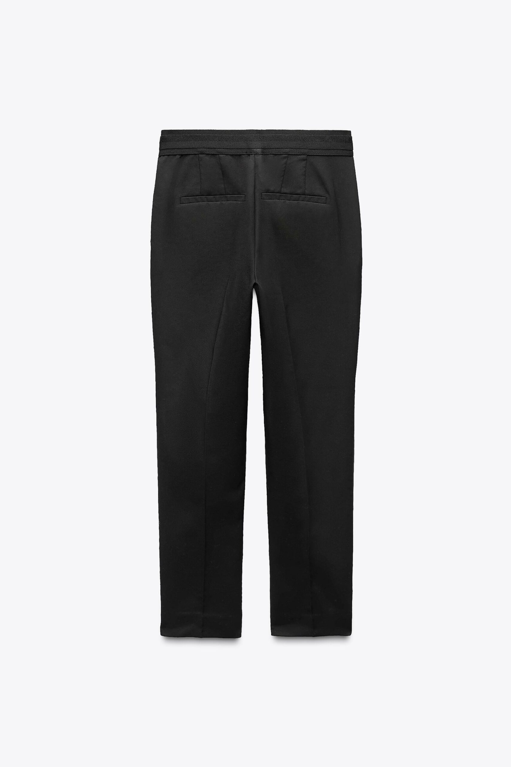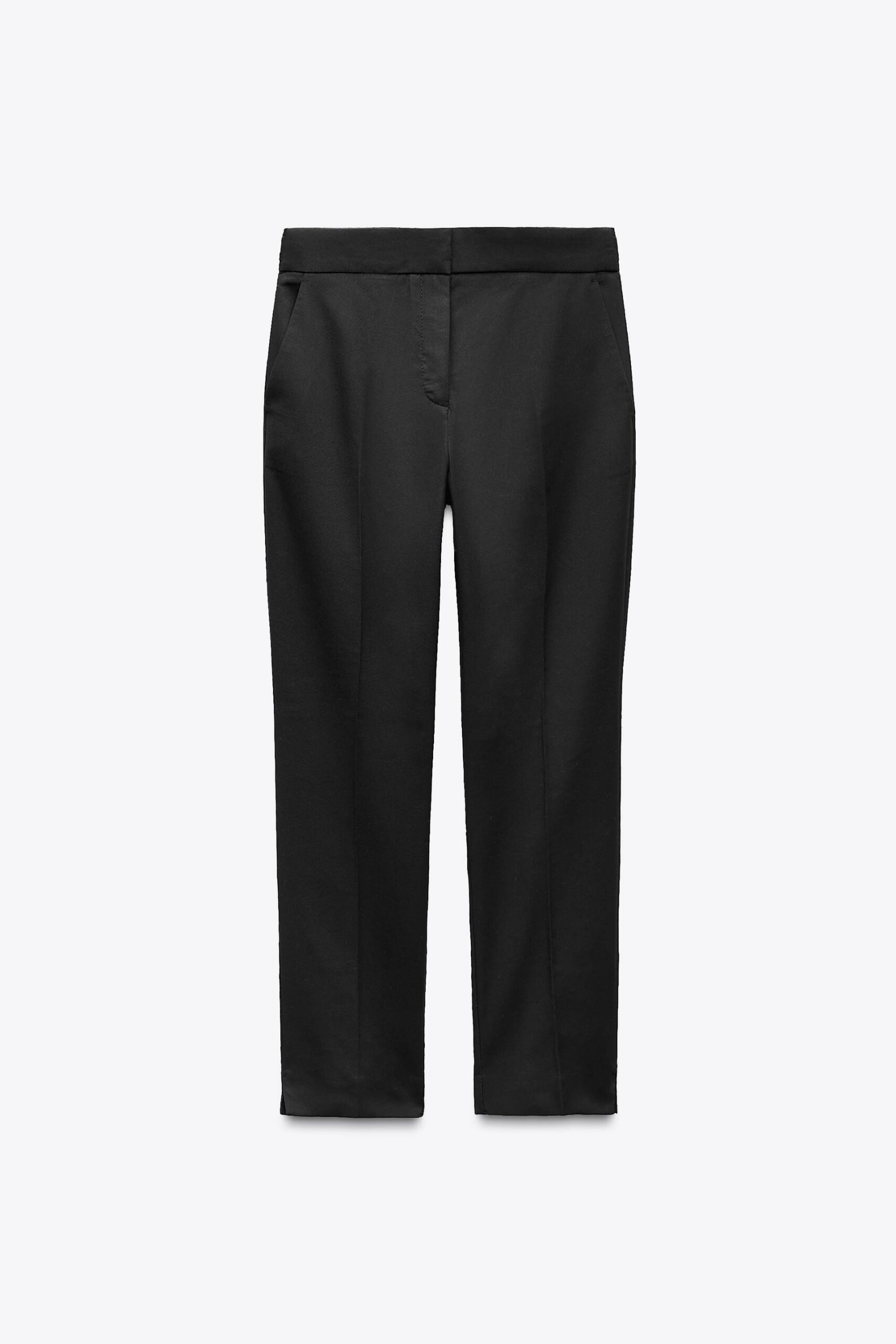 Pantalon longueur 7/8 taille haute. Jambe droite sans couture. Fermeture devant avec zip et agraphe.
