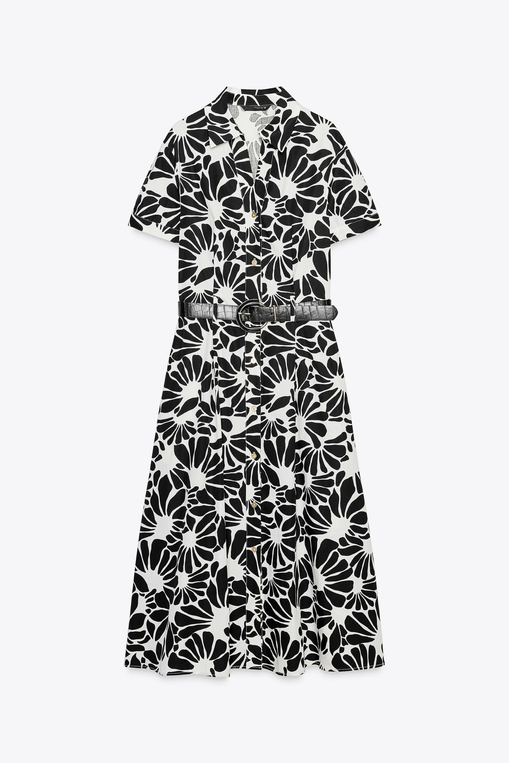 ROBE MIDI EN POPELINE IMPRIMÉE CEINTURE