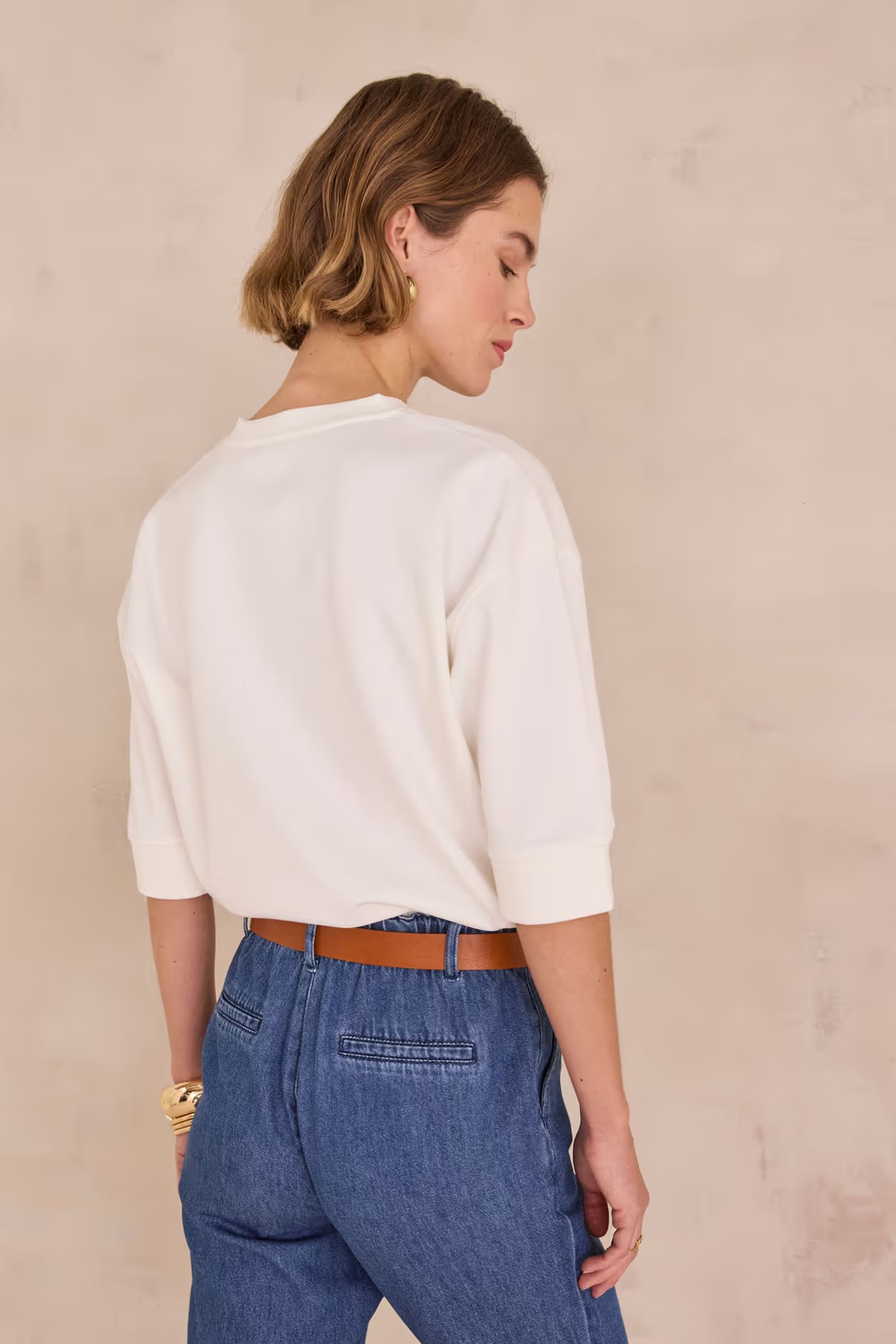 T-SHIRT EN COTON MAILLE PIQUÉ ECRU MAISON 123