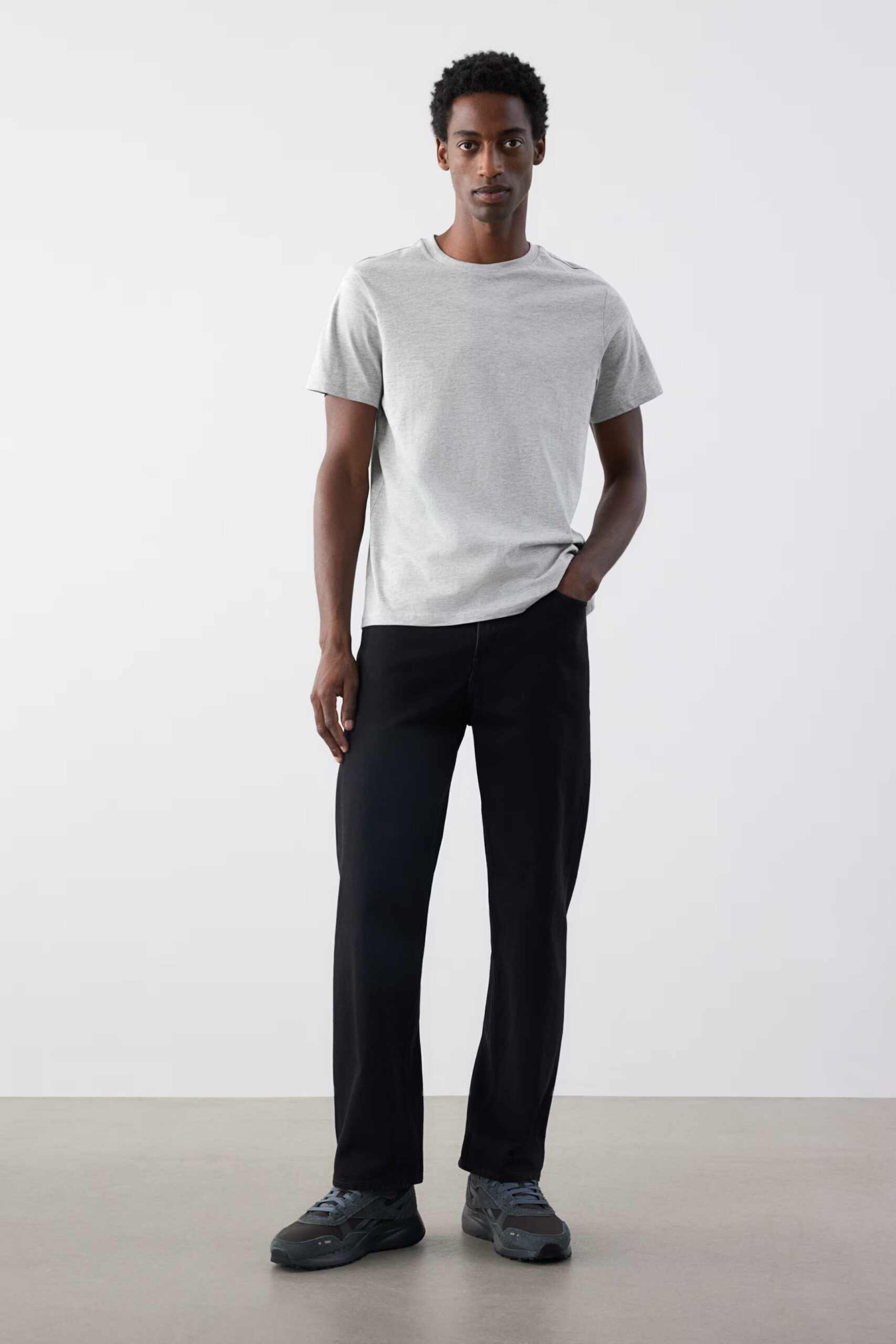 T-shirt en jersey de coton léger. Modèle avec bord-côte autour de l’encolure ronde et base droite. Coupe regular.