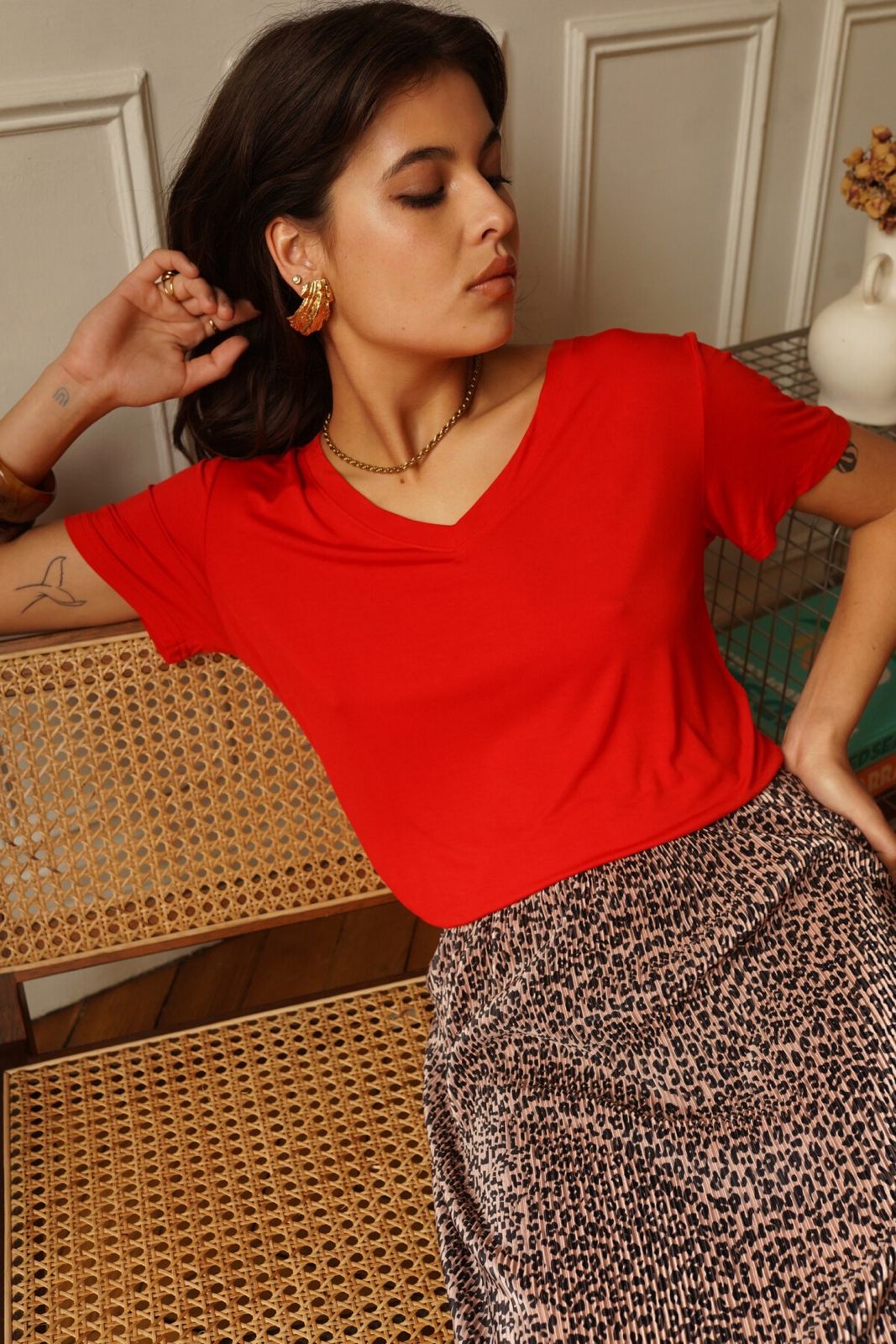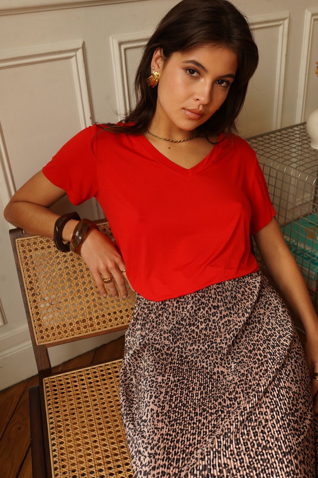 Top stretch col V rouge, léger et respirant
