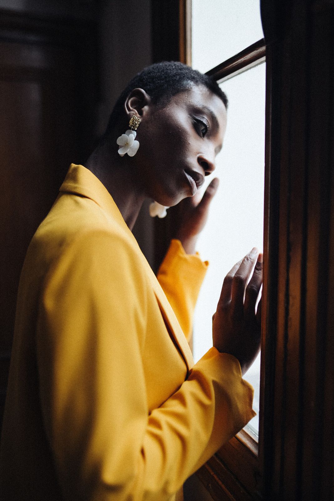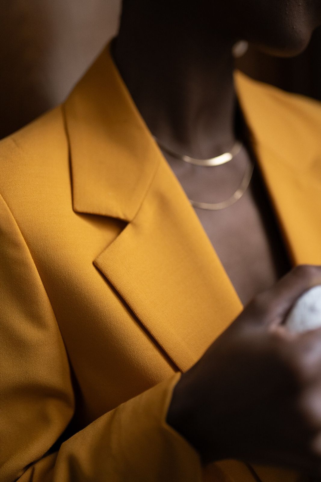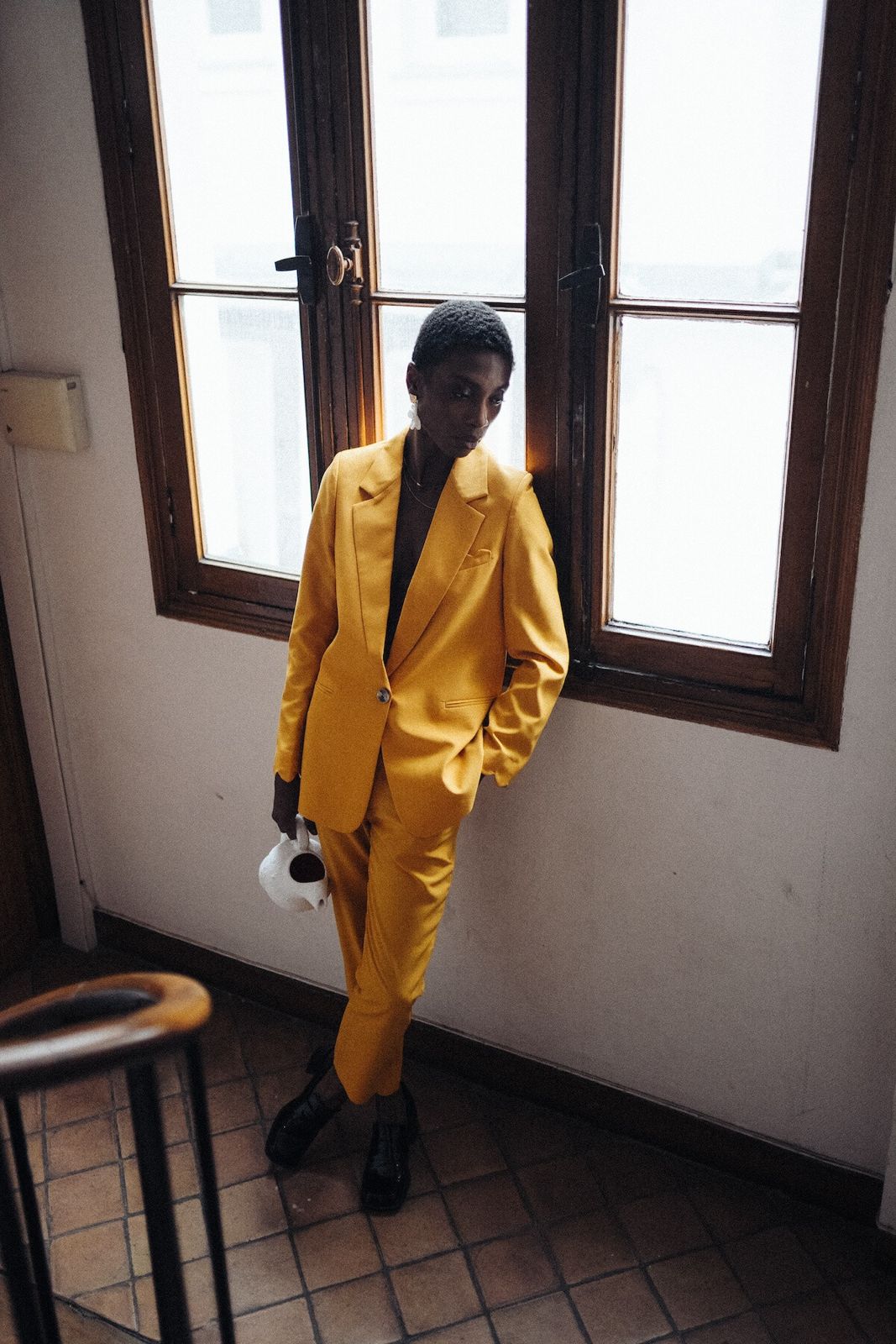 Veste tailleur à col cranté, une poche poitrine à simple passepoil festonnée